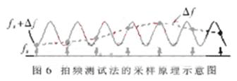 “拍频”这个名称说明了这种测试方法的原理,输入正弦波的频率与A/D的采样频率之间有一个微小的差值,因为形成了一个拍频,对测试波形不断的采样和转换结果也是一个正弦波(见图6)。这种测试方法本来是将转换的数字信号经过一个D/A转换后在CRT上显示出来,观察正弦波的平滑性。这样即使是低速的D/A也可以应用于测试。现在我们利用Labview,在测试中将ATS60E测试系统的测试频率设定为fs,波形发生器的输出正弦波的频率设定为fs+Δf。将采样结果在Labview的图表上输出,那么输出点连起来必然为一个正弦波。而转换误差会表现为波形的失真和不连续。对频差的设置最理想的情况是(这种连续的采样)使每个码都有一次采样到的机会,保证图表输出覆盖所有可能的码的故障。例如,10bit A/D,20MHz的采样率,最大3MHz的差频就可以保证每个码至少一次采样。