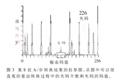 测试A/D芯片的几种常用方法有柱形图(Histogram)分析法、离散参数傅立叶(FFT)变换法、拍频(Beat frequency)测试法等。还有一种正弦波曲线拟合法(Curve fitting),它是在输入波形为正弦波时,算出输出码集与最佳拟合正弦曲线的均方差,与理想拟合误差相比较即可得出结果,这种方法本文不予详细说明。