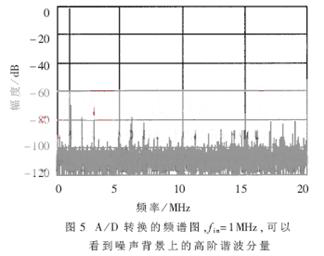 衡量A/D动态性能的指标有:信号噪声比(SNR)、信号噪声失真比(SINAD)、谐波总失真(THD)、寄生动态范围(SFDR)、交调失真(IMD)等。在计算出A/D转换的频谱后,这些参数按定义都很容易计算。计算中的谐波分量一般要求算到六阶。