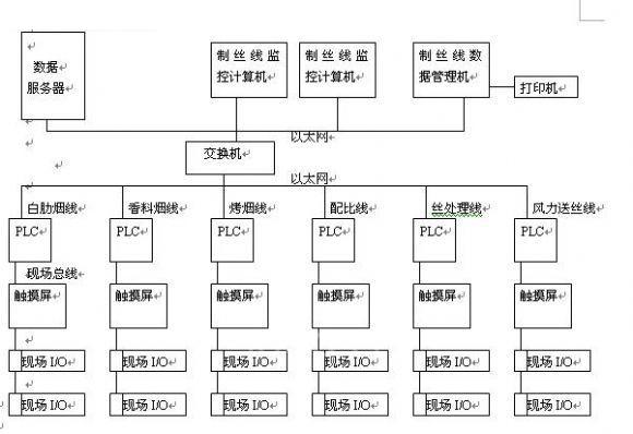 制丝线电控系统是卷烟厂制丝生产线的控制核心。系统示意图如图1。