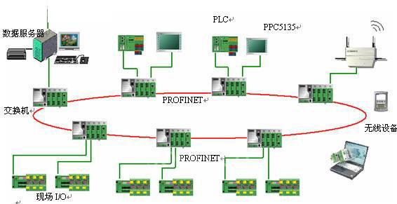 数据服务器同样通过以太网接入工业以太网PROFINET,采集相关数据。无线以太网交换机可以使工程师的无线设备便捷地连入网络开展工作。