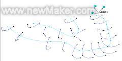 根据以上分析,排气管的整体几何形状由排气管的轮廓曲线以及可变截面来控制的,由于排气管外形较复杂,分为两次测量。所测轮廓数据点及特征数据点见图4。