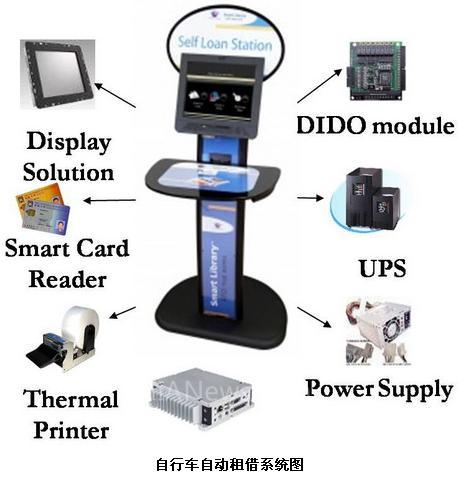 以ARK-4180嵌入式工控机为控制核心建构户外式Self-service Kiosk在台北市「微笑单车」公共自行车租赁系统中,公共自行车租借机台结构采用一体成型的铝制机构设计,能达到防水、防震、抗强风、耐高温等严苛规格;研华内建两部ARK-4180无风扇嵌入式工控机加上工业级I/O模块,构建出整个租赁系统的控制核心。一部作为租借程序的计算机控制系统,另一部作为自行车的开关锁控制。由于此类建置于户外的交互式多媒体机台必须讲求防水、防震、耐高温的设计,而ARK-4180嵌入式无风扇工业计算机采用工业级的宽温零组件设计,可支持-40℃~75℃的温度范围,不但可确保长时间低温冷机下顺利开机,也可长时间高温运作无误,因此最能因应自行车租借机台于户外的严苛环境应用。