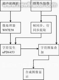 倒车多媒体可视测距终端的OSD显示控制器中采用微处理器W87E58,软件采用C语言编程。车后图像和测距数据流向如图2所示。