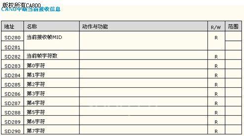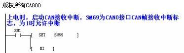 2)设置中断程序属性,把其中断事件选为48(即CAN接收中断),然后编写程序把接收到的数据传递到需要的地址.注意ID地址为双字结构,SD282-290依次为数据的高低字节,把他们传递到相应的数据寄存器然后合并就可以得到完整的数据了。