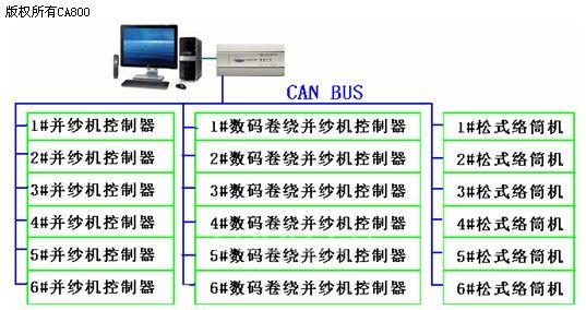 笔者根据ECCT集成的CAN总线功能,在纺织机械上的得到了成功的应用,现介绍如下:其CAN系统总体结构图如下: