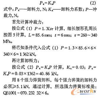 强力弹簧主要起卸料作用,所以必须计算卸料力,卸料力的计算公式为: