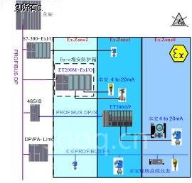 前文所述4种本安防爆控制系统解决方案有各自的特点和应用场合,在实践中均有很多应用实例。而且SIMATIC系统还提供了很大的灵活性,用户可以很方便的利用一种解决方案组成自己的本安防爆控制系统。因为西门子的集成一体化思想在SIMATIC产品上的充分体现,我们可以通过一条PROFIBUS-DP现场总线将几种防爆解决方案统一在一个防爆控制系统中,如图5所示,甚至将防爆应用和非防爆应用统一在一个控制系统中。这常见于西门子PCS7系统中多区域、多场所、多站点的应用。