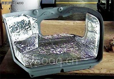 就应用的广度而言,欧文斯科宁的VersaMat吸音棉不失为一种理想的选择,其应用涉及了汽车的内饰部件,如:车顶棚、门板、扬声器、后隔板、行李箱饰件、座椅、主地毯、手套箱、空调、立柱和仪表板等,以及汽车的外饰部件,如:引擎罩、挡泥板、仪表板防火墙、中央通道罩和轮罩等。该材料由两种不同熔点的纤维组成,原料可来源于33种不同类型的热塑性纤维,是一种100% PET隔音隔热材料。其优点是:吸音性能优异,轻质且可100%回收。根据应用需求,通过不同的纤维组合,可赋予该材料优良的耐高温性和耐候性。如果对其进行表面处理,还可获得良好的防水/防油和阻燃性能,以及可用于涂胶、印花、叠层或其他用途。该材料使用方便,可热压成型,利用热熔胶或双面胶即可将其与部件贴合在一起。对于塑料部件,还可采用超声波焊接的方式进行贴合。理想情况下,它可降低0.5~1dB的噪音。目前VersaMat吸音棉已通过了通用、福特和戴姆勒-克莱斯勒的材料标准,并已在这些汽车上得到了应用。