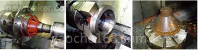 综上所述,非常规加工工艺和编程方法其关键技术主要在于打破传统加工工艺采用固定的线速度和进给量进行加工的约束(因为以往使用的普通机床和专用机床主轴转速和进给量在切削过程中一般无法改变其大小),在切削过程中,不管切削到任何部位都可随心所欲地进行主轴变速或进给量改变。不过在实际应用中,在切削加工同一部位的粗加工、半精加工时,应进行进给量的改变,精加工时不应改变进给量,因为进给量改变,加工尺寸的大小会受到影响。在生产中,主轴变速或进给量改变需灵活使用。