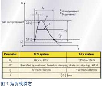几乎所有直接连接至汽车电池的电子组件和电路都要求保护,以免于受到抑制、瞬态电压(高达60V)和反向电压状态的损害。对于这些电子电路而言,必须能够经受住电源线路上一定程度的过电压,这也是种常见的要求。对于那些要求任何特殊车载电子系统的主电源输入均能够在各种不同瞬态电压状态(包括交流发电机抛负载)下工作的车载系统来说尤为如此。