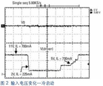 车载环境对于电源管理芯片的需求正日益增加。这些需求之一便是需要电源管理 IC 能够在一个宽电压偏移范围内工作,直接连接至电池的电子系统通常都会有这种电压偏移范围。通过观察该冷启动脉冲,可以描述出此类瞬态的一个实例。这种状态可发生在寒冷环境下车辆的第一次启动。如果温度足够低(冷却至零摄氏度),那么引擎的油就会变得粘稠,通过要求提供更高的功率(扭矩),这就对马达提出了重负载要求。这样就需要能够提供更高电流的电池。重负载需求可以在该点火周期内将电池电压立刻下拉至 3V。