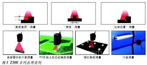 利用Z500在车身组装配件后、焊接前这段间隔中对组装的位置进行测量检查。Z500备有适用于不测量领域的3种不同的感测头,可根据待检查处的大小来选择最合适的感测头,此外,Z500可测量“高度差异”、“宽度”、“边缘位置”等多个项目,能够满足多种设备的要求(见图3)。
