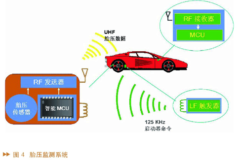 在汽车系统应用中有很多智能应答器的使用,如智能车辆出入系统、引擎防盗锁止系统(如图3所示)和胎压监测系统(TPMS)。