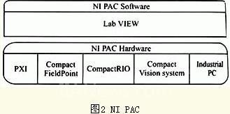 NI公司的PAC,其特色在于整合了测试测量领域中应用非常广泛的开发平台LavView。PAC系统开发软件LabVIEW不仅为用户提供创建复杂测量控制系统的编译灵活性,同时因为它直观的图形化开发界面而变得非常容易使用。在LabVIEW中,用户可以利用数百个内置的控制和分析函数,快速开发各种复杂程序。用户还可以在LabVIEW中调用其他软件开发的程序代码,来进行处理I/O、运动控制、机器视觉及仪器通信等各种应用。PAC系统开发硬件包括Compact FieldPoint,CompactRIO,Compact Vi-sion System,Industrial PC。如图2所示。
