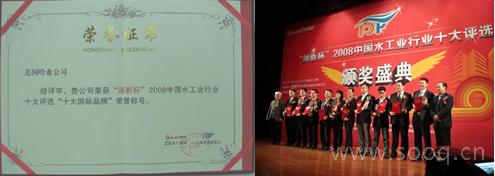 在水工业十大国际品牌评选中,哈希公司继07年获此殊荣之后,再次获得此奖项。