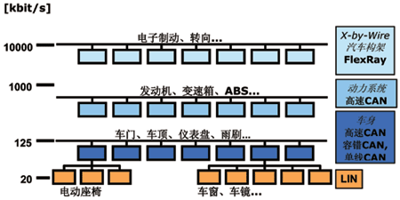 图1 LIN、CAN和FlexRay的典型应用
