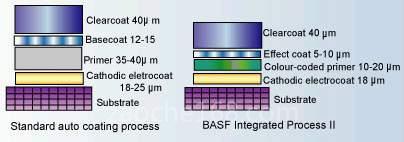 图一:巴斯夫整合工艺二代降低了涂层厚度,节省了材料