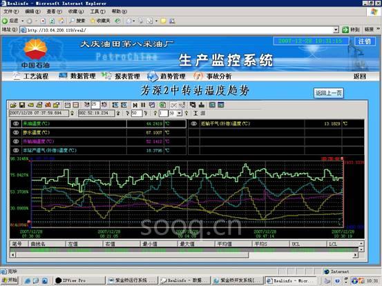 1.数据采集:紫金桥软件具有丰富的I/O接口,能够与各种DCS,PLC,智能仪表通过多种连接方式,如以太网、串口、拨号等。并支持DDE、OPC、设备专有通信协议等。紫金桥软件系统支持多种DCS系统和PLC系统,同时有国内最强的接口开发队伍,开发数据接口有丰富的经验,可以快速的进行数据接口开发。