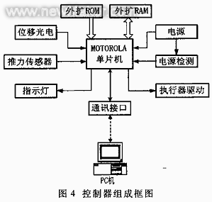 为了实现速度采集、状态显示、算法实现和数据处理等功能,所设计的控制器的组成框图如图4所示。