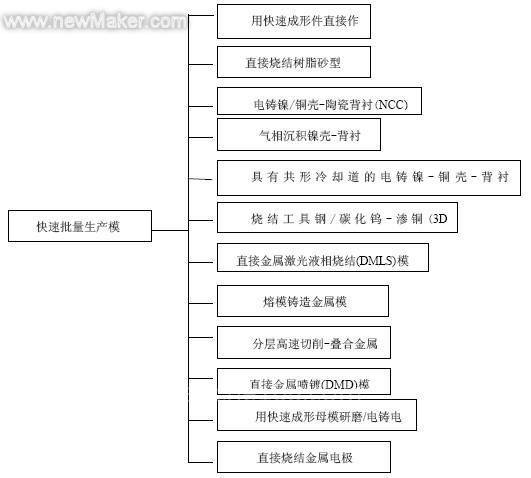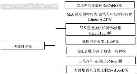 快速模具制造(RT)与快速成形(RP)有密切的关系。RT 方法的出现与发展,在很大程度上取决于RP 技术与新材料的发展,采用RP 技术能直接或间接快速制作模具,而RT 技术又能促进、扩大RP 的推广应用。
