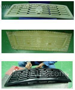 瑞鼎机电科技有限公司聚积了一批来自国内外的高级技术人员,他们长期从事快速成形、快速模具制造的研发与生产,积累了丰富的经验。公司拥有面积近一千平方米的快速模具制造车间,装备了国内最大、最先进的德国MKV II-XL 型真空浇注机,在充分吸取国外先进技术的基础上,通过长期的试验、研究,从材料改性与模具结构设计等方面着手,创造了一套独特的工艺方法,因此,为汽车、家电等行业提供了许多大型、复杂、精密的快速模具及其制件(如图4~图7),例如汽车保险杠、水箱面罩、车门内饰板、仪表板、车灯灯罩、音响系统面板、手机壳等零件的高精度母模、硅橡胶模,以及小批量塑料试制件,能在相当短的时间内,满足客户试制新产品的要求,从而使过去不得不进口的试制件改由瑞鼎机电科技有限公司供应,并可显著地降低成本。