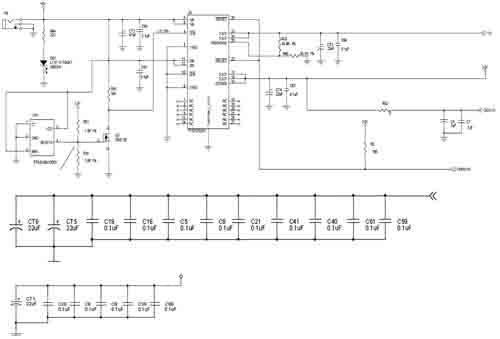 采用TPS767D301构成的电源电路从外部稳压电源引入+5V电压,+5V电压经TPS767D301后输出电压为1.8V和3.3V。为减小电源本身对DSP的干扰,在电路中增加了滤波网络,如图3所示。