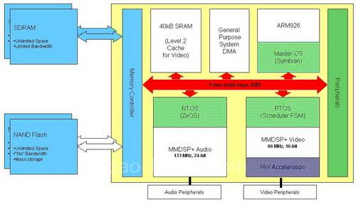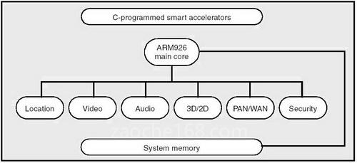 图三 具广泛功能延伸性的多核心应用处理器架构(以Nomadik STn8810为例)