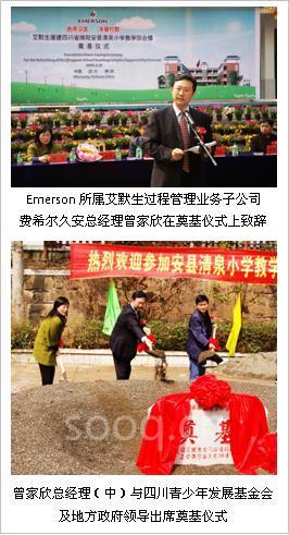 “Emerson 公司去年已经承诺拨发专款用于四川灾区长期校园重建,Emerson 希望通过援建清泉小学教学楼,能让更多的孩子早日在安全舒适的环境下学习。回馈我们有业务发展地区的社区建设,也正是我们 Emerson 公司应该履行的良好企业公民责任。”曾家欣说。