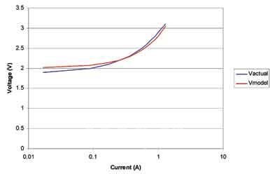 图1显示了典型InGaAlP LED的正向电压特征。也可以把LED作为电压源与电阻串联建模,并查看模型与实际测量之间的密切关联性。电压源拥有一个负的温度系数,当结温上升时,电压源的正向电压会降低。InGaAlP LED(黄色和琥珀红)的系数在-3.0~-5.2mV/K之间,而InGaN LED(蓝色、绿色及白色)的系数则在-3.6~-5.2mV/K之间。这就是为什么不能直接对LED进行并联的一个原因。产生热量最多的器件往往需要更大的电流,更大的电流会产生更多的热量,进而引起散热失控。
