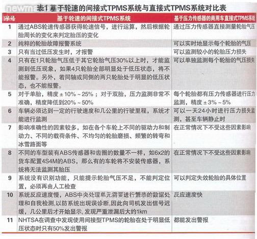 间接式TPMS是借用ABS中的轮速传感器测量4个车轮的转速。当某只轮胎的气压下降时,轮胎滚动半径减小,车轮转速相应增大,系统主要通过比较两条对角线上车轮转速的总和判断压力是否下降。间接式TPMS主要缺点是无法对两个以上轮胎同时缺气的状况和速度超过100km/h的情况进行判断。