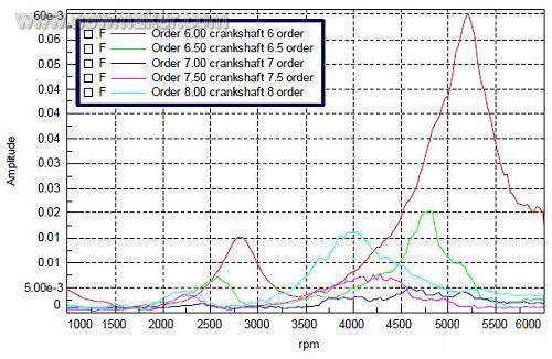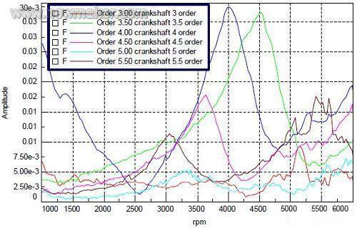2 利用发动机的扭振彩图,可以清楚地判定曲轴的共振频率。