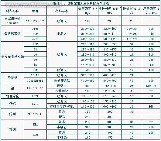 2)屈强比σs/σb屈强比小,说明σs值小而σb值大,即容易产生塑性变形而不易产生拉裂,也就是说,从产生屈服至拉裂有较大的塑性变形区间。尤其是对压缩类变形中的拉深变形而言,具有重大影响,当变形抗力小而强度高时,变形区的材料易于变形不易起皱,传力区的材料又有较高强度而不易拉裂,有利于提高拉深变形的变形程度。