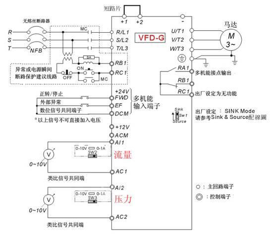 台达VFD-G设计机专用变频器。台达VFD-G变频器属于客制化塑机专用变频器,专用于注塑机、挤塑机、吹膜机、吹瓶机、空压机油压机等变负荷大过载驱动。台达VFD-G系列注塑机专用变频器规格特性包括:独特的过载能力:150%60秒n ;两路0-1A电流信号输入端子;两路模拟量输出信号n ;可分段增益设定n; 内建PID反馈功能;两个模拟量信号可作加减乘 取最大值运算;注塑机专用功能n;节能运转,及用电量记录等。