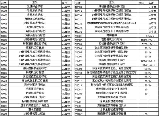 3、 软件系统设计 在设计程序过程中,会使用到许多中间继电器、寄存器、定时器等软元件,为了便于编程及修改,在程序编写前先列出可能用到的软元件,如表7所示。