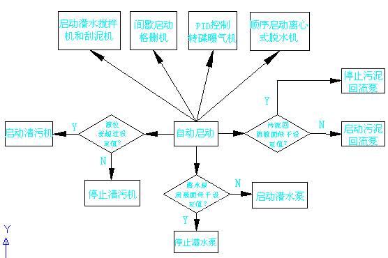 ① 接通电源,启动自动控制方式,启动潜水搅拌器和刮泥机。