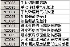① 数字量输入部分,在此控制系统中,所需要的输入量基本上属于数字量,主要包括各种控制按钮、旋转按钮及数字输入,共31个数字量输入,如表2所示。