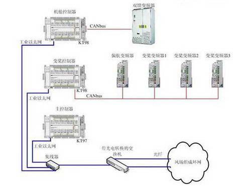 使用2台KT98分别作为机舱控制器和变桨控制器,1台KT97作为主控制器。这3个控制器的主要功能为: