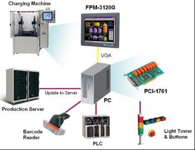 新系统具备自动选择、追踪、记录等功能。研华提供了FPM-3120G-RAE作为人机界面(HMI),通过PCI-1761连接EMO、安全门开关、开/关按钮、指示灯、警铃和信号控制装置。每个研磨板具有唯一的条形码,经扫描发送到服务器,以验证进程的准确性。整个过程通过验证后系统会继续运行,如果研磨板尚未到达装料设备则会生成错误代码。