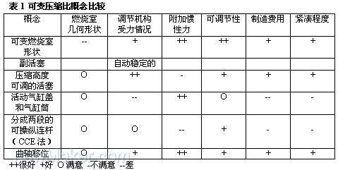 压缩比的可调节性,除了与作用在调节机构上的力有关以外,也与机构是否易于接近有关。这方面,气缸盖中的副活塞和通过偏心器调节的方案特别有利。