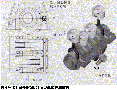 传统的固定压缩比汽油机在冷机怠速阶段为了加热三效催化转化器,要大幅度地减小点火提前角以降低热效率。这样一来就会明显地降低扭矩,有可能使得发动机运行不稳定。在全负荷工况为了减少增压汽油机的爆震倾向性也要依靠减小点火提前角。但是,过多地减小点火提前角会导致扭矩过多地下降,使得发动机运行不稳定。