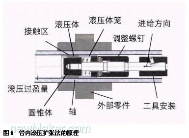 管内滚压扩张法已被纳入特别易于加工的工艺方法之列,因为它在凸轮孔的公差方面没有特别的要求。管内滚压法的基础是滑动滚压原理,插入的管子元件具有较大的滚压过盈量,使轴在带孔的外部零件中发生局部的塑性扩张,由于接缝处的外部零件的弹性反弹作用而发生很高的面压配,由此形成力连接(见图6)。