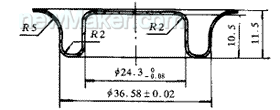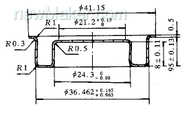 反拉伸φ24.3mm内孔的高度是由整形工序决定的,为了在拉伸该内孔时不使法兰上的材料再次流入,必须控制好工序①的拉伸高度,否则,法兰将因失稳而起皱。该模具已生产了30万件产品,完全满足产品质量的要求。