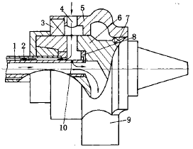 1.内杆 2.外杆 3、7.轴承 4.高压切削液入口 5、6.连接器 8.减振座 9.排屑口 10.月牙槽