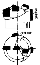 在孔加工中主要应解决的问题是冷却润滑、排屑和导向。高压切削液在工作循环中起到了润滑、冷却和排屑的作用:而导向由钻头自身结构特点实现(如图2),钻头采用焊接式硬质合金切削刃,在钻头上有一个支撑垫块和一个导向垫块,支撑垫块用来平衡由钻头本身不对称的切削刃产生的径向力,而导向垫块则起一个钻头自身导向的作用,同时支撑垫块和导向垫块还对孔壁起一个修光作用,提高了孔的粗糙度精度。通过以上介绍我们可以看出,喷吸钻可以实现高速切削,一般切削速度可达,因此可获得高的进给速度:孔加工精度可达H7,粗糙度一般可达Ra1.6µm。由于充分的冷却润滑可减慢钻头的磨损,因此加工大批量孔时也可保持精度的稳定性。