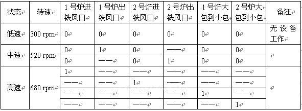 4.根据混铁炉的工艺要求,我们在满足除尘环保要求的前提下,为简化控制逻辑,现场直接根据出铁口、进铁口的炉盖位置开关状态来控制的转速,预设3个速度点,根据现场所需风量不同自动调节电机转速。