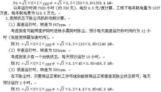 4.综上所述,除尘风机上高压后较以前工频液力耦合器调速,每年可节约电量339.6万度,每年节约电费为169.8万元。