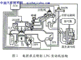 (一)燃料供给系统的改造增加了一套气体燃料供给装置,主要包括燃气瓶、燃气电磁阀、蒸发调压器、切断电磁阀、分配阀和喷嘴等。气体燃料在蒸发调压器中调压、吸热、汽化后,通过由步进电机控制阀门开度的分配阀,经安装在进气歧管上的喷嘴与空气混合后进人气缸;