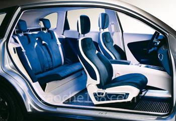 在车辆中安装一种平底靠背椅对于减少在车祸中所受的损伤是一种很好的解决方案,因为人们认为座椅的支撑性能和轮廓舒适度同等重要。因此,其设计的第一排座椅采用瘦体式结构,座椅安装在钢管结构件上,衬垫采用VibraTech技术的泡沫材料,而第二排座椅采用新的腰托装置设计,靠背的截面较薄,从而使乘客的膝部空间足足多了50mm的空间。这给OEM厂商提供一个选择的机会,既可以利用节约的50mm空间,相应地将中排座椅位置前移,也可以适当地缩小这一空间,以改善膝部的舒适空间。