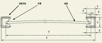 尺寸A和D的选取原则:首先保证玻璃不出槽,也就是当玻璃集中偏向玻璃导轨一边时,另一边玻璃不能从导轨脱出;另外,导槽对玻璃的阻力要尽可能小。要想保证玻璃不出槽,就必须让玻璃尽量多吃进玻璃导轨,图2中的E要加大;而要减小导槽对玻璃的阻力,就必须减小导槽与玻璃的接触面积,即E要减小。兼顾两个因素,一般而言,E要占到A的70%~75%,再结合尺寸B(B+E=A),尺寸A(注:如果尺寸A和尺寸D不相等,A为较短尺寸)推荐选取范围为12~16mm。C的大小与导槽截面的选取有关,导槽截面不同,其变动的范围也较大,这里不作详细介绍。